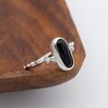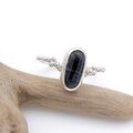 艶やかな漆黒の輝きが美しい石を、アームに粒飾りを添えたクラシカルなリングに仕立てています。