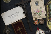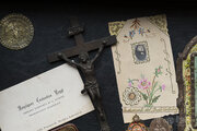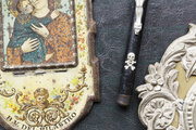カタコンベの古い記念品のメダイや1900年の美しい革装幀の祈祷書、重厚なつくりのクロスなどどれも美しいものばかりです。