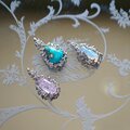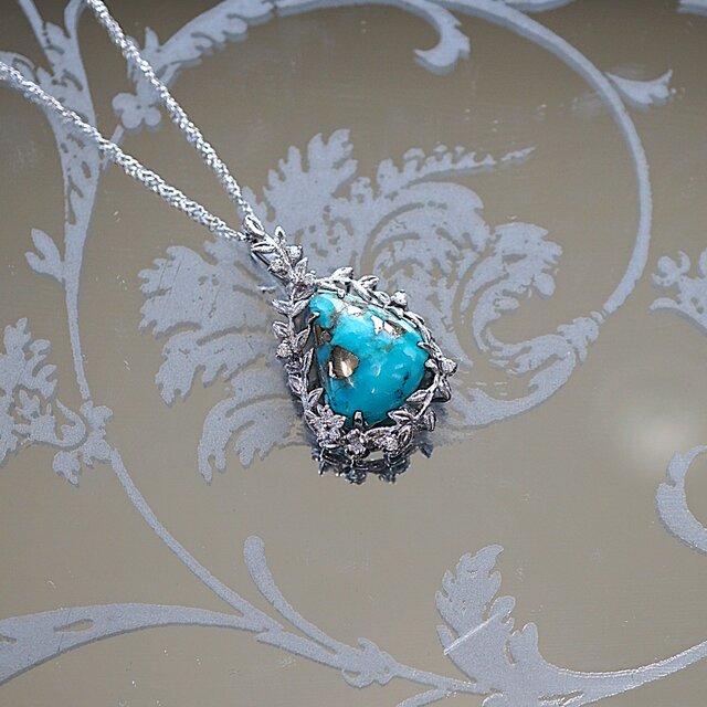パイライトトルコとモアッサナイトを使用し、シルバーでペンダントを製作いたしました。