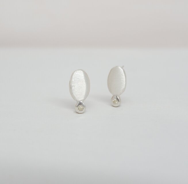 小さなダイヤモンドを留めたシルバーのピアスです。