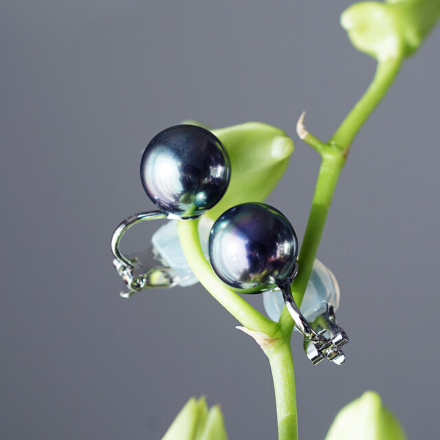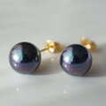 大粒・美しい照り★ピーコック貝パール10mmのイヤリング・サージカルステンレススタッドピアス ~黒揚羽