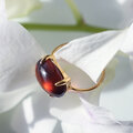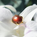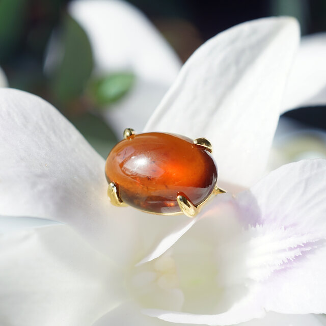 大粒オレンジガーネット・ヘソナイトの14mmのカボション爪留めリング ~緋色(あけひいろ)