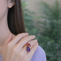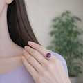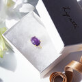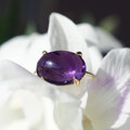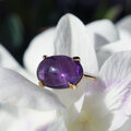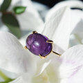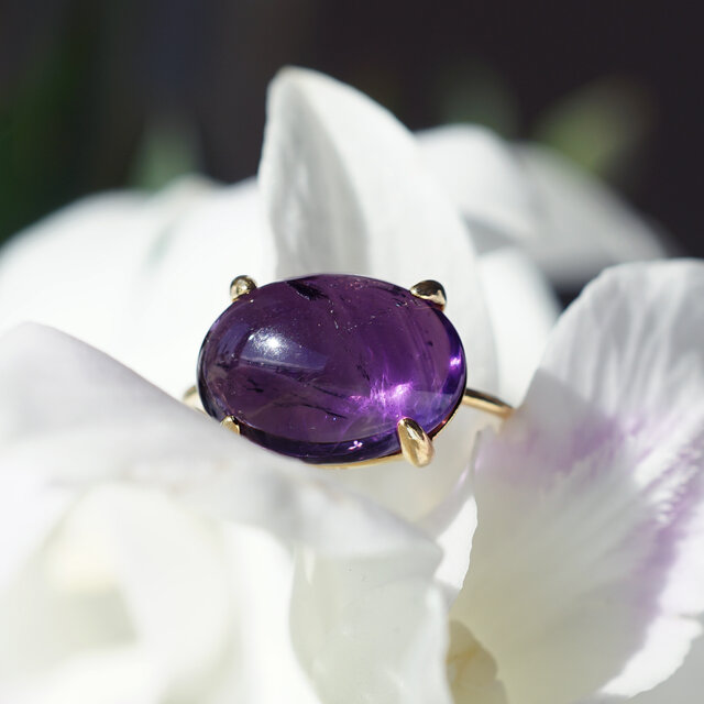 大粒アメジストの14mmのカボション爪留めリング ~濃色(こきいろ)