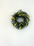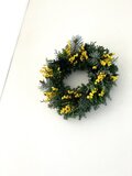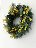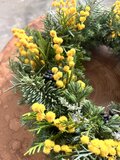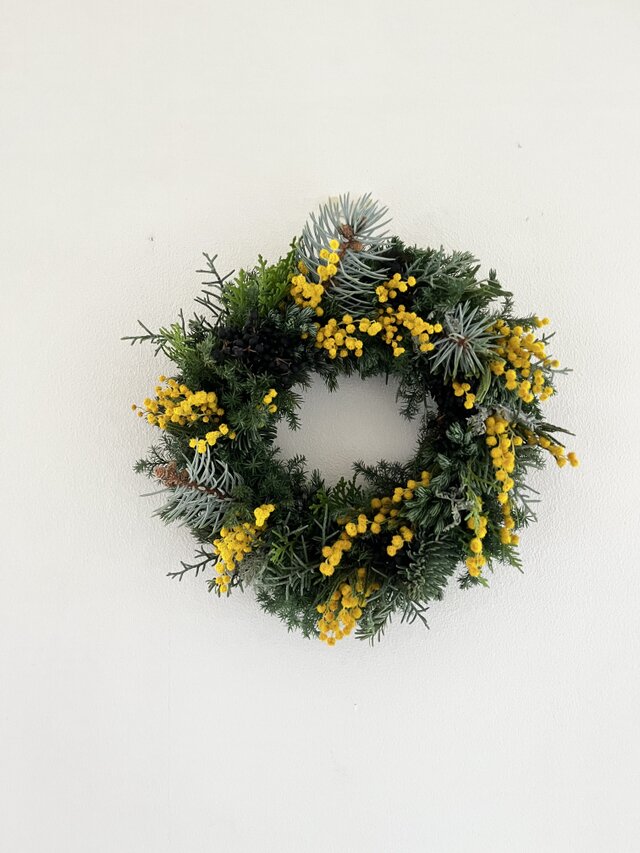 花材…ミモザミランドール.モミ.ヒムロ杉.ブルーバード