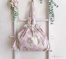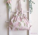 リバティ アーカイブ・ライラックの巾着トートバッグ*ペールピンク*受注制作*