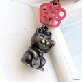 立体的な招き猫チャームを下げて帯回りのアクセントにちょうどいいサイズ。
