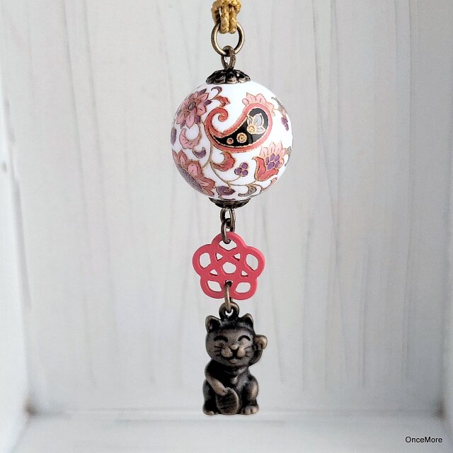 和柄玉と招き猫の根付け・帯飾り(AG)