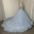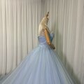 カラードレス ブルー ベアトップ キラキラチュール フレアスカート 華やかなトレーン 編み上げ 披露宴