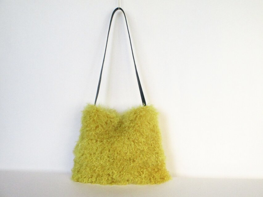 イエローくるくるムートンのワンショルダーバッグ