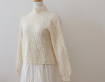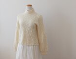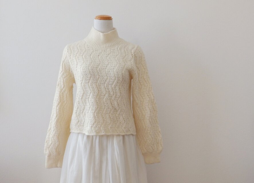 カシミア95%、ナイロン5%のやや太めの糸を透かし模様で編んだプルオーバーです。
