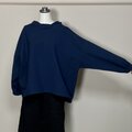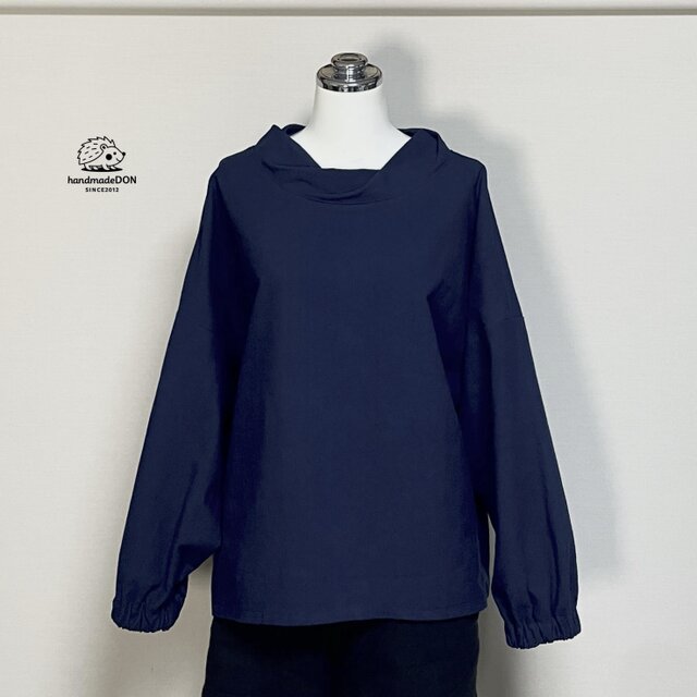 ★ツイストカラーのふんわりプル 長袖【やわらかコットンリネン】ネイビー◆フリーサイズ
