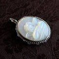 ラファエロの絵画をモチーフにした天使のカービングが施されたかわいい白蝶貝(マザーオブパール)のデザインsv925(スターリングシルバー)ペンダントトップ。西洋と東洋の融合♪ジャイプールメイドの貴重な一点物です。
