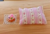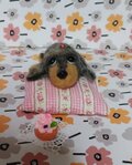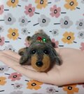 手作りの羊毛フェルト犬、クッションとお菓子付きの可愛いデザイン。