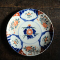 草花と蝶々◆伊万里 花文色絵金彩七寸中皿 古民家 骨董・antiques 明治期 【窯傷有り】i3
