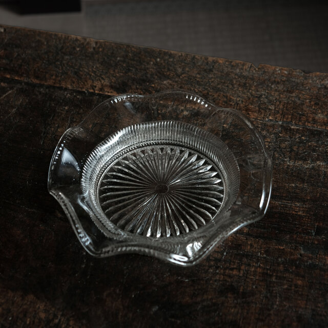 素敵な形状◆波打つ形状 アンティークガラス中皿 骨董/antiques 古民家 古道具 明治末〜大正期