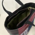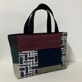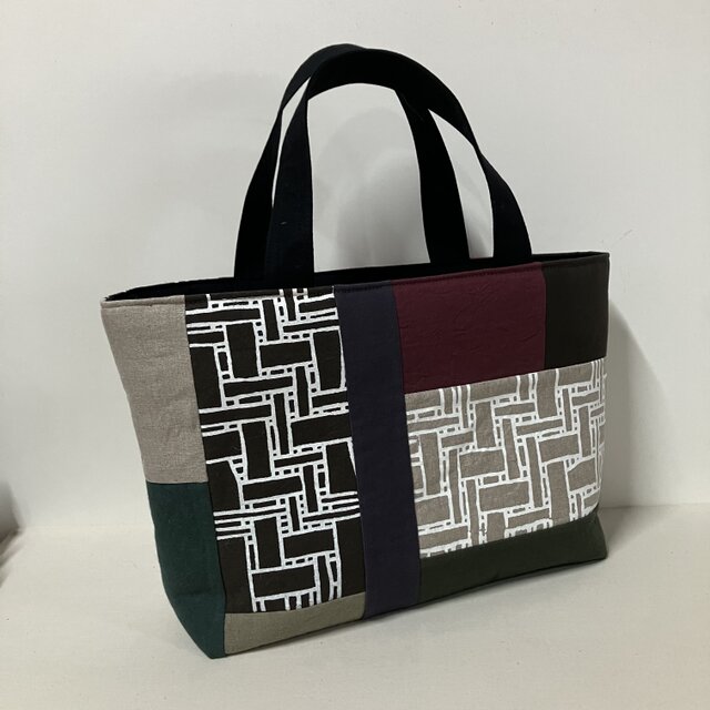 シルクスクリーンでプリントした布としっくり色の生地をつなぎ合わせて、トートバックに仕上げました。
