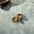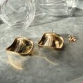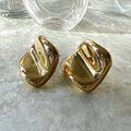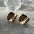 ゴールドトーンの変形スクエアプレートピアス。