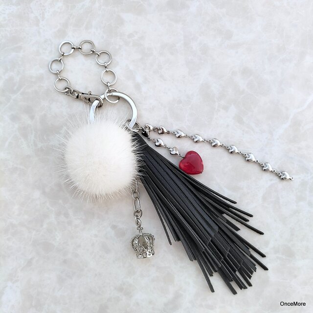 【現品限り】レザータッセルとミンクファーのキーホルダーまたはバッグチャーム