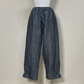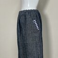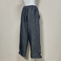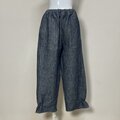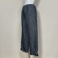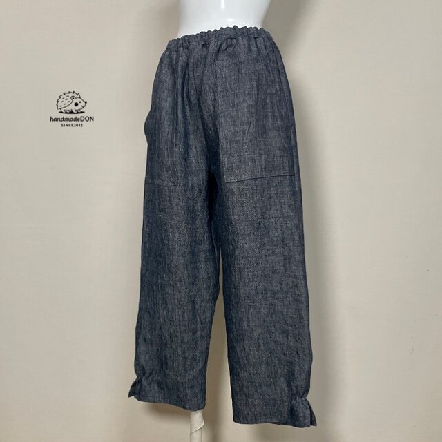 【厚手リネン】◆ポップスリットパンツ ロング◆デニム調ネイビー◆フリーサイズ(厚手15番手、リネン100%)