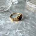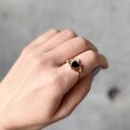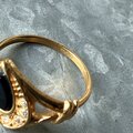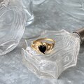 ゴールドトーンをベースにブラックオニキスのハートとクリアラインストーンが施されたリング。