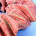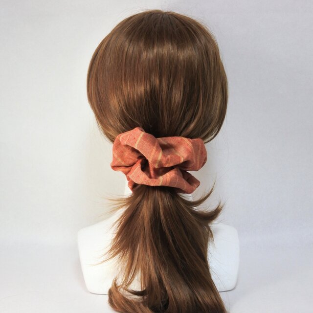 着物地でレトロな雰囲気のシュシュをつくりました。