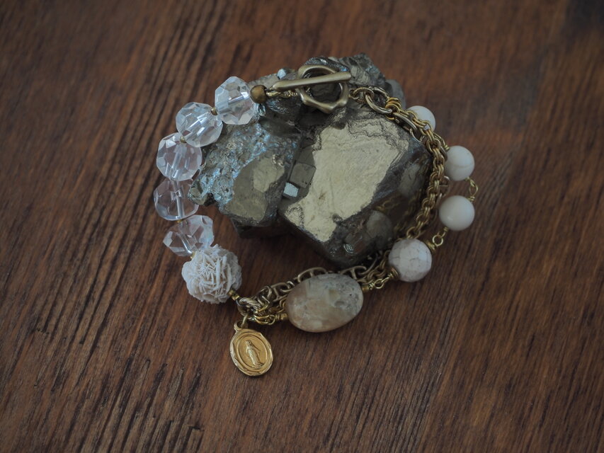偶然手に入れた小さな砂漠のバラ、しかも穴があけてあるビーズの状態でしたから、すぐにブレスレットに仕立てることにしました。いつも眺めることができますように。