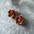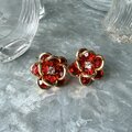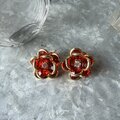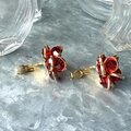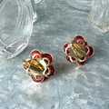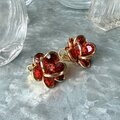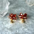 赤いのカットグラスが美しい、フローラルイヤリング。