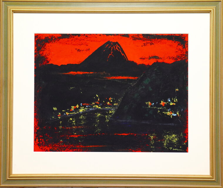 「黒富士-湯の宿より」(NO.2530) 6号F アクリル絵の具 送料無料 安本太ん 画像をクリックすると全面画像になります