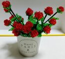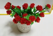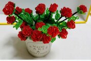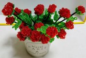 透明赤の丸小ビーズで作りました。 葉っぱは透明オーロラクリアグリーンの丸小ビーズです。 つぼみ2本と花3本のセットになります。