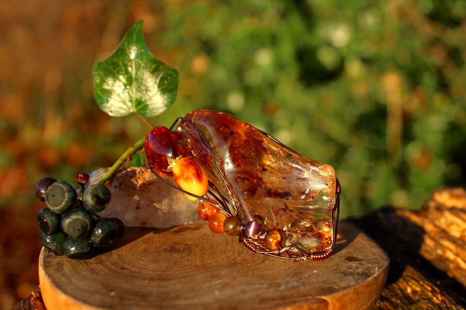 霊的向上を促し、予言やテレパシス能力を向上させ、神秘の力を目覚めさせます。情報、伝達を容易にする力もあると言われているので、他人の言葉を理解しにくい人は、この石の力を借りると良いでしょう。アンバーは太陽のエネルギーを含み、元気のない時に身につけると生命力が高まり、気力が湧いてきます。過去の恐怖心や罪悪感、不安や絶望感を追い払い、生きる喜びを与えます。アンバーの代表的な色である黄色はコミュニケーションの色で、内気な性格を防ぐともと言われています。また、邪気を払う効果もあるとされています。大人にとっては、健康と長寿の石とされ、子供にとっては、悪霊や災い、病気から守ってくれる石、と信じられています。熱と光をたくさん放射し、強力な磁気エネルギーを持った石です。低い熱伝導性があるため、触ると温かみを感じます。それにより鎮静作用があり、ラビングストーンとして、より愛されてきました。アンバーは身に付けるだけでなく、いつも指でこするようにしましょう。そうすることにより、高ぶった感情を鎮めて、精神を安定させてくれるそうです。さらに、こすることにより、静電気を帯びる帯電効果があることから良い気を引き付けるとされ、金運、仕事運、人気運が良くなると言われています。ヨーロッパでは、アンバーをプレゼントする事は「幸運を贈る」という意味を持ち、英国では結婚10年目にアンバーを贈る「琥珀婚」という風習があります。
