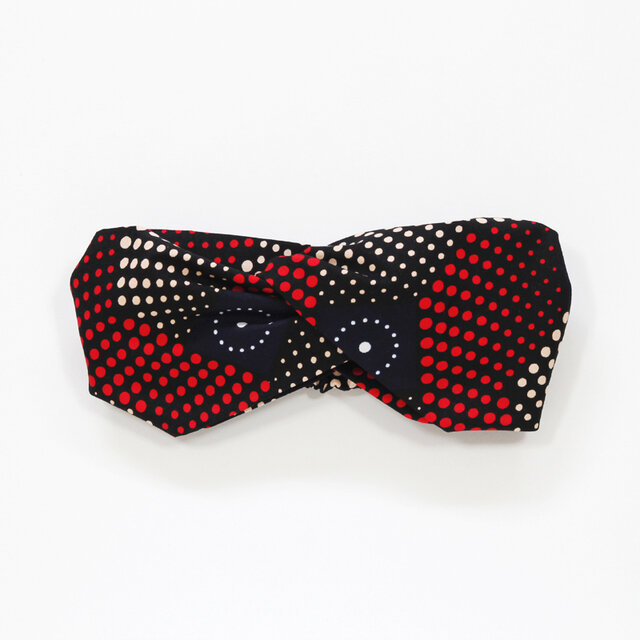 アフリカ布を頭に巻くイメージをターバンに仕立ててみました。鮮やかな色柄がよく映えるようにバンド幅を大きく取っています。