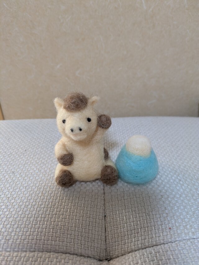 羊毛フェルトで作った干支・お馬さんと富士山の置物です。