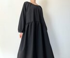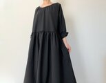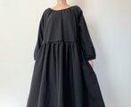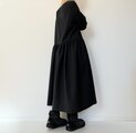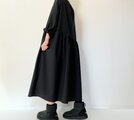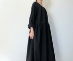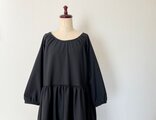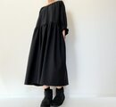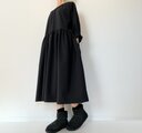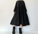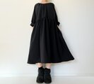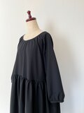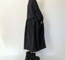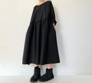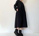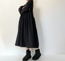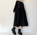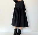 ウール混*落ち感きれいなシンプル長袖ワンピース*大人のナチュラルスタイル*フリーサイズ*ブラック無地*ポケット付*黒