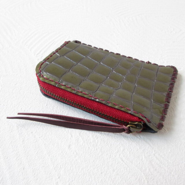 SALE開始~ 《エナメル》スリムタイプ・L字ファスナー・コインケース・型押しクロコ・0030