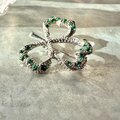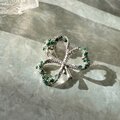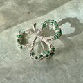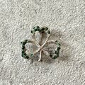 シルバートーンのエメラルドグリーンラインストーンが煌めくシャムロックブローチ。