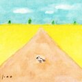 菜の花畑の真ん中に空に向かって道が続く、前向きで明るい作品です。