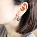 愛らしいコロンとしたフォルムに、大粒のグレーオニキスが美しいフープイヤリングです。