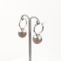 愛らしいコロンとしたフォルムに、大粒のグレーオニキスが美しいフープピアスです。