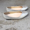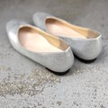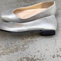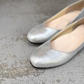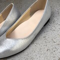訳あり品アウトレト シルバーグリッター 幅広 ローヒールパンプス フラットシューズ ふわふわクッション
