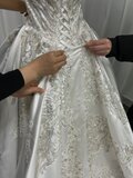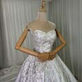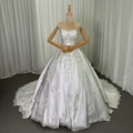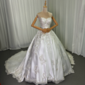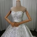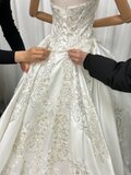 豪華!ウェディングドレス 韓国風ドレス ベアトップ キラキラ光る刺繍 拳式 華やかなトレーン デザイン感 編み上げ