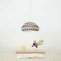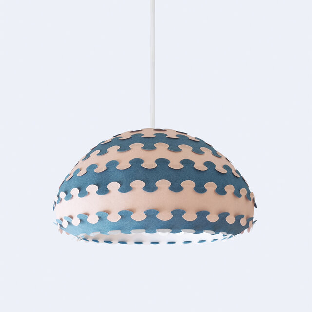ランプシェードはインターロックされた帯状パターンを組み合わせた2層構造。色彩豊富なパステルカラーで取り揃えております(ミッドナイトブルー、グリーン、ミントグリーン、ピンク、イエロー、ラベンダー、ホワイトの計7色。この製品は組み立てられた状態で販売されます。