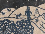 ミカンの国は暖かいイメージがあるかもしれませんが、所によっては雪が積もります。そんなことを思いながらミカンを食べていただきたいなと思い、図案にしました。