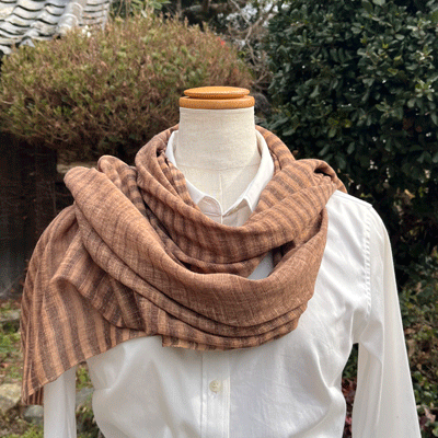 柿渋染めの色合いも織りの風合いもとても良く、大変気に入りました。 ありがうございます。