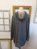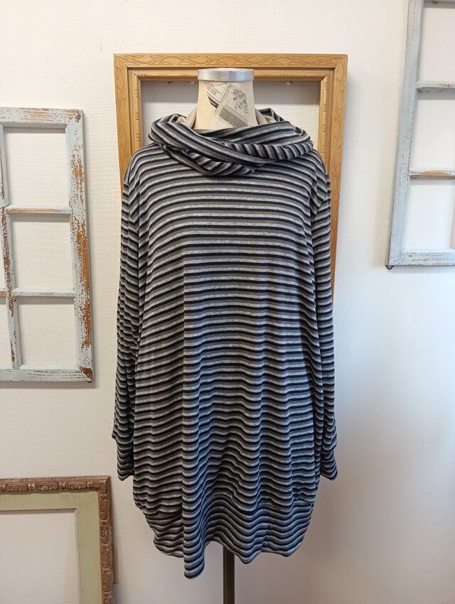 タートルみたいなフード付き❤️ボーダー柄ニットチュニック グレー紺(サイズフリー L〜 L L)