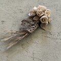 小さな薔薇を、手編みレースで丁寧に束ねたコサージュです。