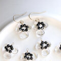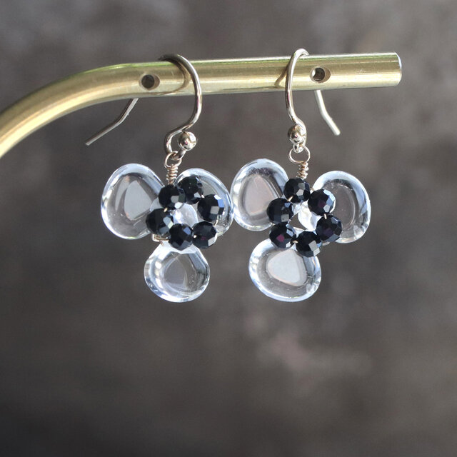 透明に咲くクリアフラワー | 天然石 クリスタルクォーツ×ブラックスピネル | 14Kgf ピアス/イヤリング