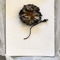 種子のコサージュは初めてです。 ブルーの軽やかな美しさがより一層引き立つようです。 微妙に色が違う小さなひまわりたちが愛らしいです。