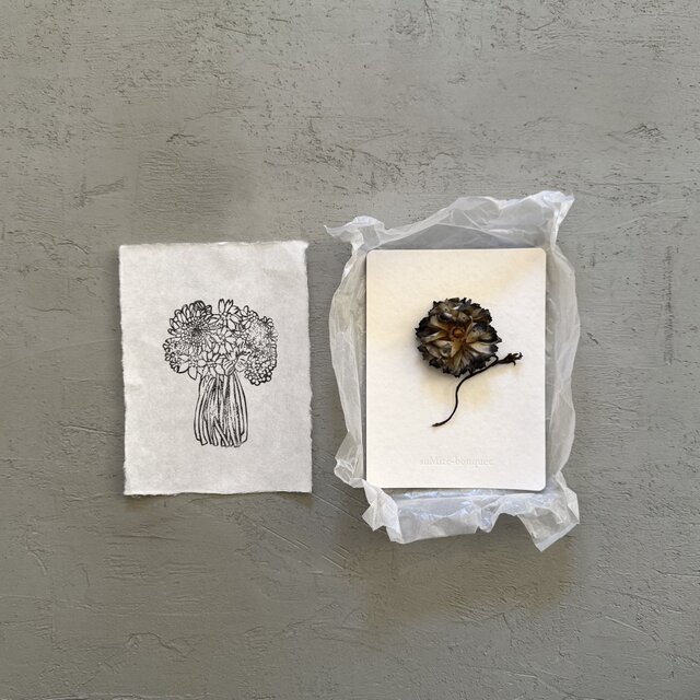 ピンクのコサージュはお花ひとつひとつが微妙に違うピンク色でとても可憐です。 カモミールのコサージュは枯れた風合が素敵で冬の訪れをかんじさせてくれます。