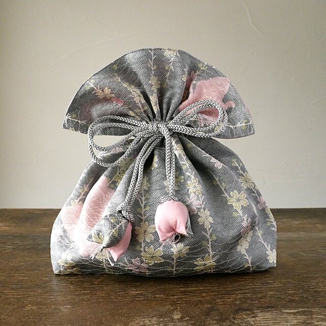 着物 巾着 幸せを呼ぶFUGURO プレミアム シルク 中サイズ