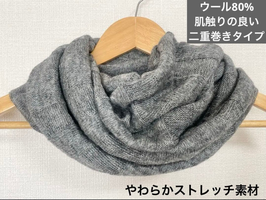 肌触りの良いウール80%二重巻きタイプネックウォーマー、寒さ対策に最適です